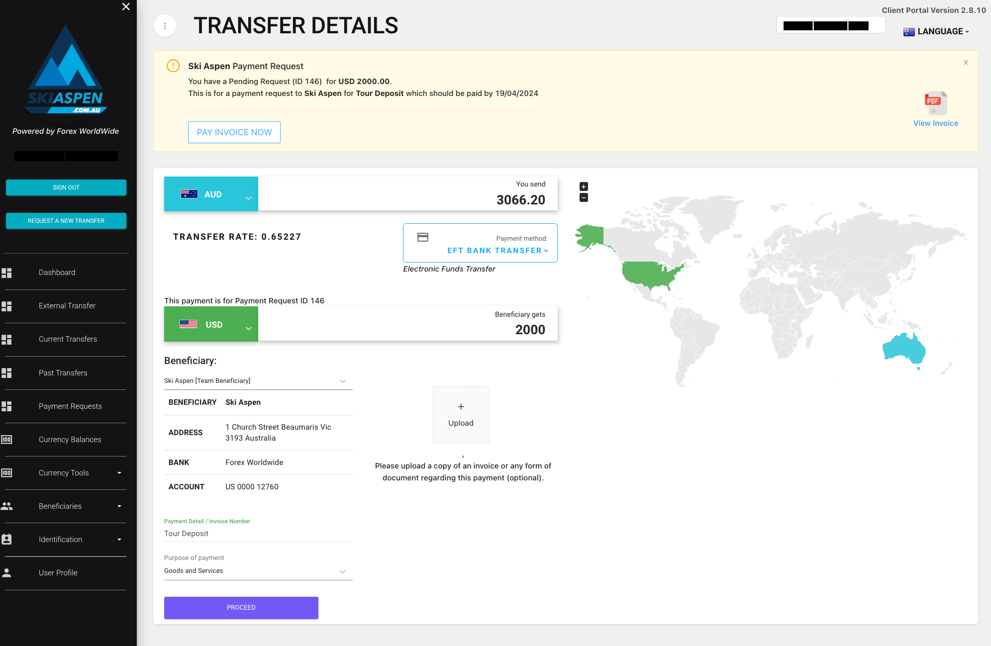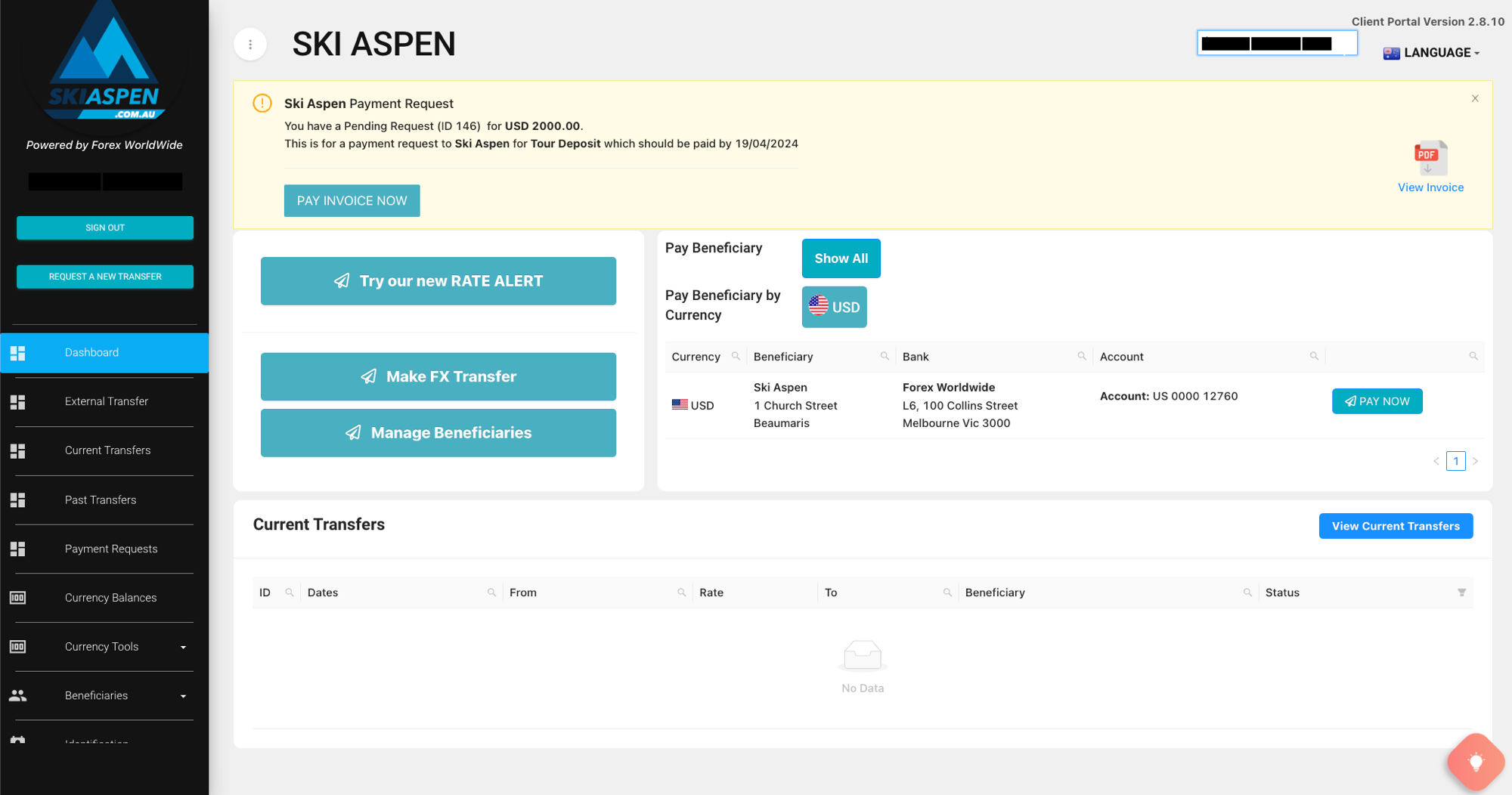 - If you have an account with Forex Worldwide then it will contain a link to log in to our secure web portal to make payment